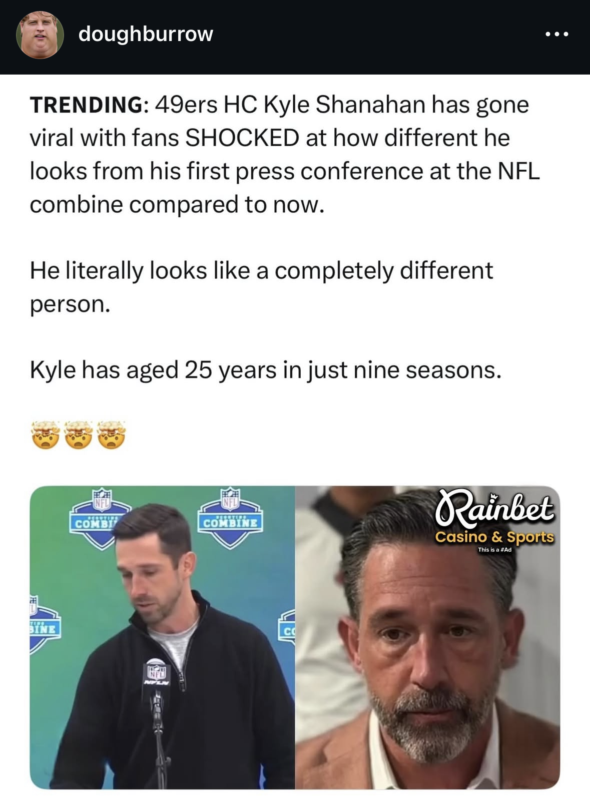 Sidenote: I like how the niners couldn’t run the ball against the Seahawks or any team really and you guys are like this is what we need in an OC. Good luck!