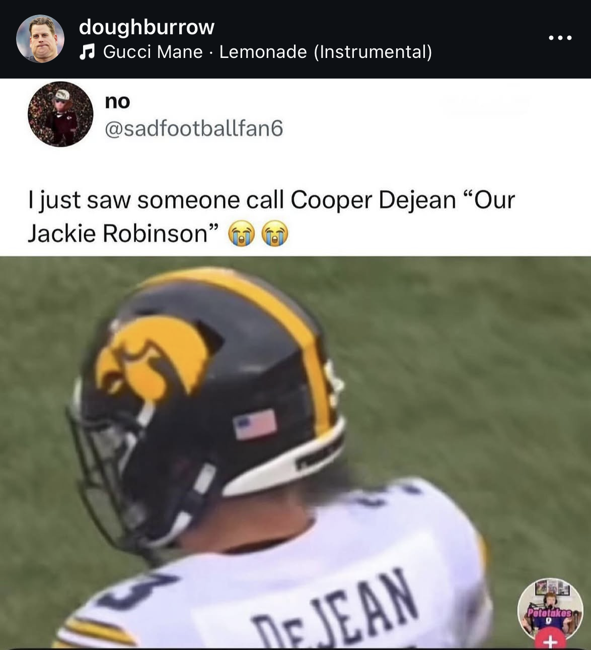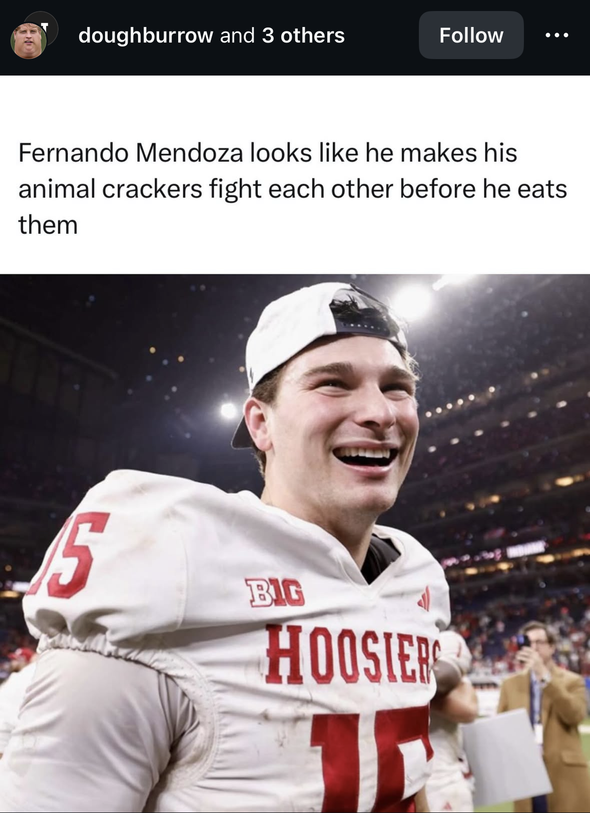 I wish I had some fun dating stories for all the married people, but it’s just like me pulling out my phone at a restaurant to watch the 4th quarter of the Packers Bears wildcard game. I feel like that meme: There will be no second date, but at least Colston Loveland is on his radar, in case he starts liking football next season.